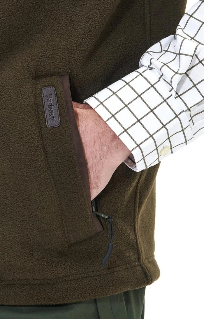Enhanced with leather Barbour badges to the left pocket and the back of the neck, there is no mistaking the quality origins of the Active fleece gilet. A soft and snug extra layer to have to hand on chilly days at home and in the office, there’s no need to turn up the thermostat with this cosy zip-up waistcoat on your team. Featuring a stand collar, microfibre shoulder patches and a series of conveniently placed pockets, this well-presented piece is the smart choice for men with a strong sense of style.