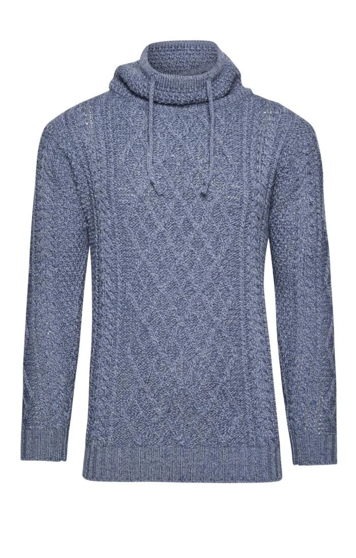 With its concoction of classic Aran patterns and super-soft feel, this drawstring sweater combines the ruggedness of the traditional Irish knit with the gentle touch and superior warmth of 100% merino wool. The cosy cowl neckline is topped with a woollen draw cord for an extra level of cosiness and an infusion of contemporary style. Made in Ireland by Aran Woollen Mills.