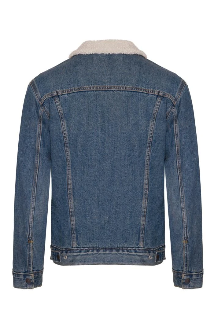 Adapted from the original Levi s jean jacket, the Levi s Sherpa Trucker jean jacket adds warmth into the mix with its plush Sherpa lining and quilt lined sleeves. Cut in a regular fit from 100% cotton, this fresh take on an enduring classic loses none of the traditional features including the snap closures, popper fastening chest pockets and welt side pockets, whilst infusing the jacket with extra softness and cosiness. The Levi s pocket tab confirms the authenticity of this piece which will only improve with age.
