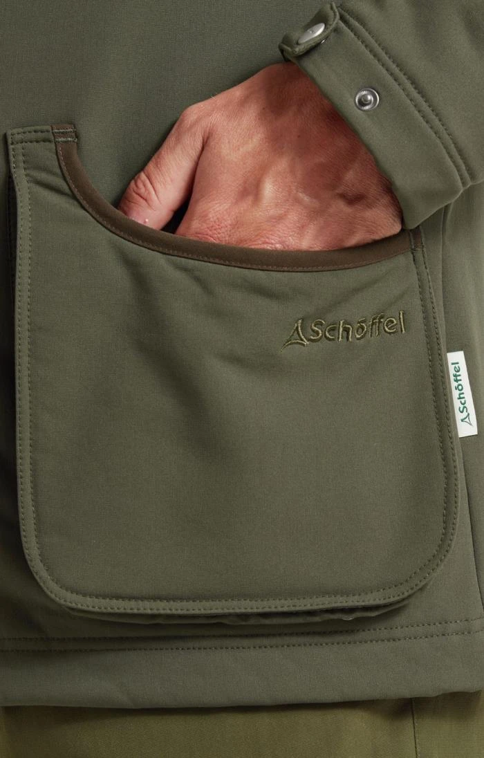 Engineered for uncompromising comfort and optimum performance in the field, the Gunby jacket by Schoffel combines technical expertise with smart design to form an effective and adaptable piece with its sights set on much more than sporting success. Constructed from a water-repellent stretch fabric with a cosy fleece lining and fastening with a two-way zip, the lower bellows pockets make room for cartridges, personal items and hip flasks, the shoulders are reinforced with Schoffel’s signature brown trim and their iconic branding is visible throughout.