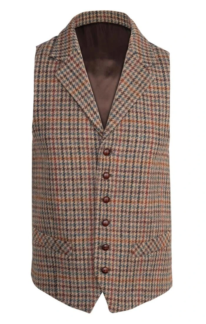 The gunclub checked version of this Harris Tweed waistcoat can be paired with the matching jacket and trousers to form an elegant three-piece suit. Use as a smart, yet equally warm alternative to a lightly quilted gilet to retain an edge of distinction over fine knits and tattersall shirts.