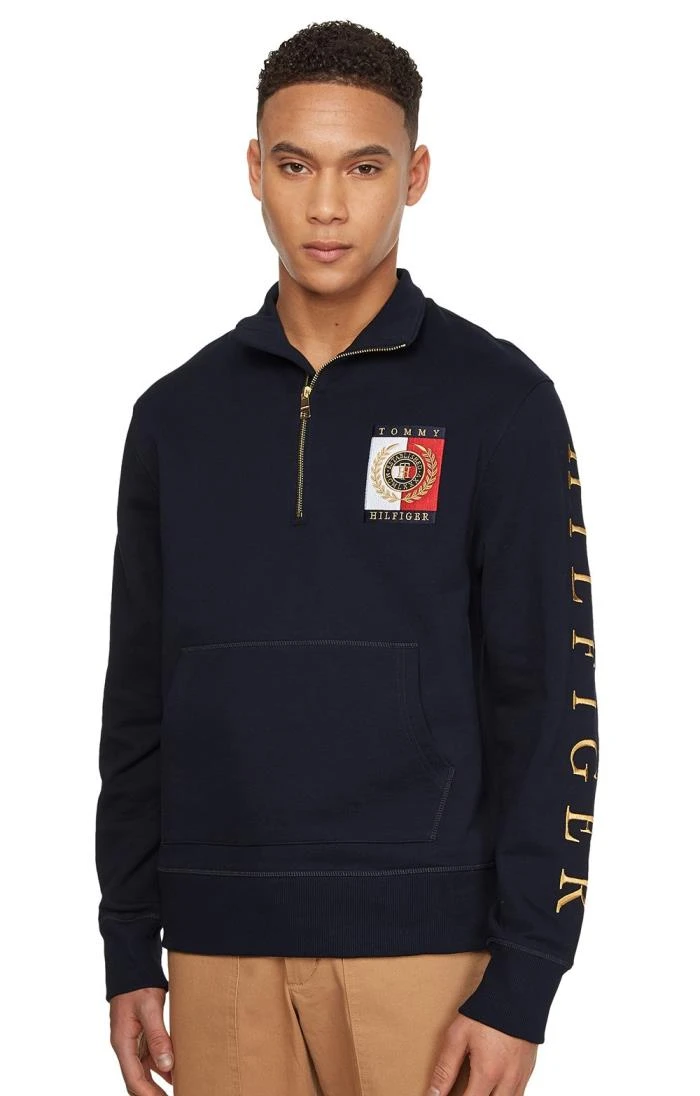For a smart take on an everyday sweatshirt, this men’s Tommy Hilfiger Square Icon hoodie stands out from the rest. Classic details like the large kangaroo pocket and ribbed collar, cuffs and hem have been joined by a neck zip and the embroidered logo on the chest and full-length sleeve. Crafted from indulgent organic cotton, this is a statement piece you’ll find an excuse to wear every day.