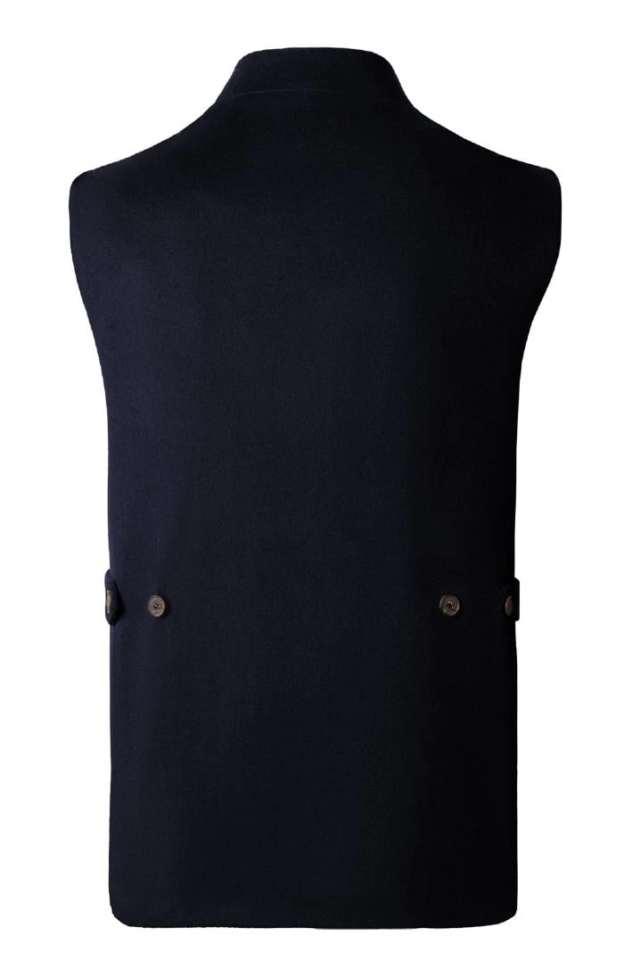 This sharply cut waistcoat showcases a smart yet sporty shape, while the AMF stitching creates a smooth line and an unmistakable mark of tailored quality. Buttoning to a stand collar with lower patch pockets and a welted chest pocket, this sleek wool and cashmere creation adds a dapper finish to your casual style.