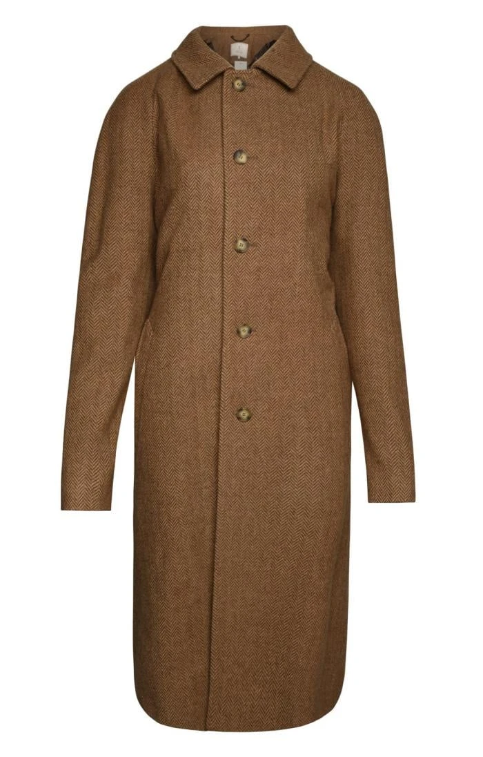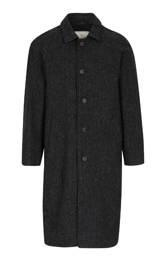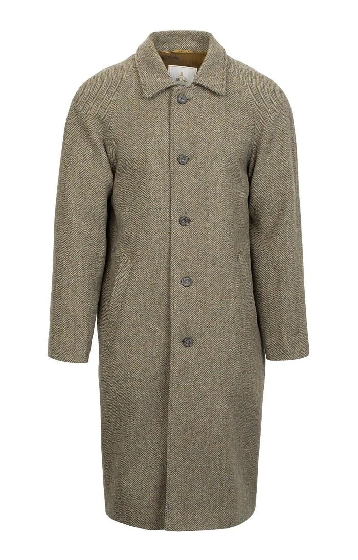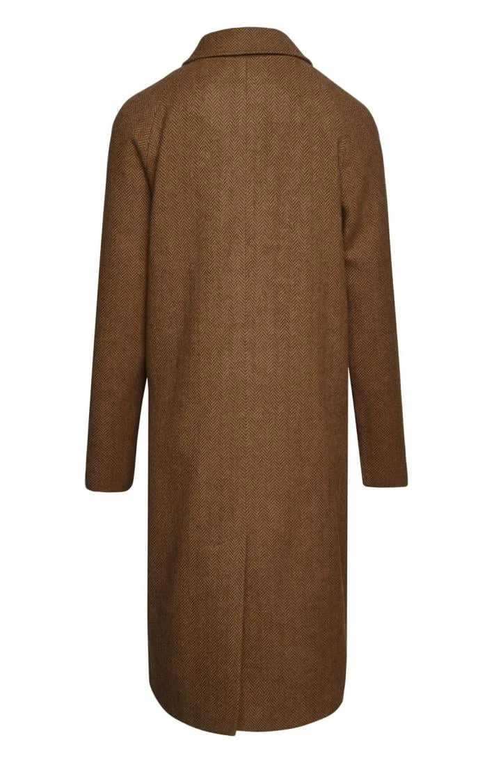 Produced in a pure new wool heavyweight herringbone tweed, this stunningly smart coat harks back to classic raglan designs of the past, with the distinctive shape updated for a more contemporary feel. Striking detailing completes the look, with slanted side pockets, horn buttons, two inside pockets and a flash of felt beneath the collar for a final touch of classic style.